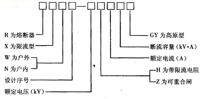 三、高壓熔斷器的型號含義: