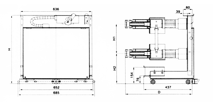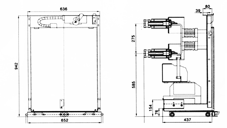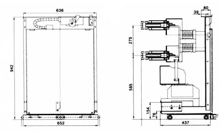 此車型適用于配置JDZ(X)10<G>型電壓互感器,安裝尺寸圖參照大連第一互感器廠,如配置其他型號電壓互感器,訂貨時(shí)需另外注明。熔斷器按XRNP-10型或RN2-10型配置。